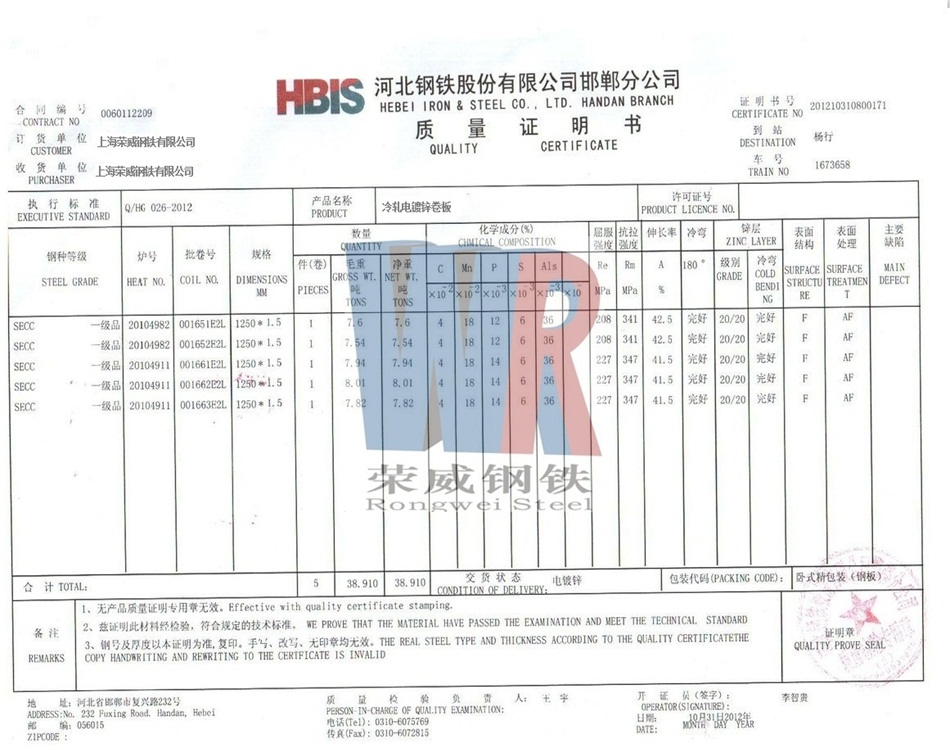 2.上海荣威--日本新日铁深冲冷轧卷1.0 和1.2-1249SPCEN